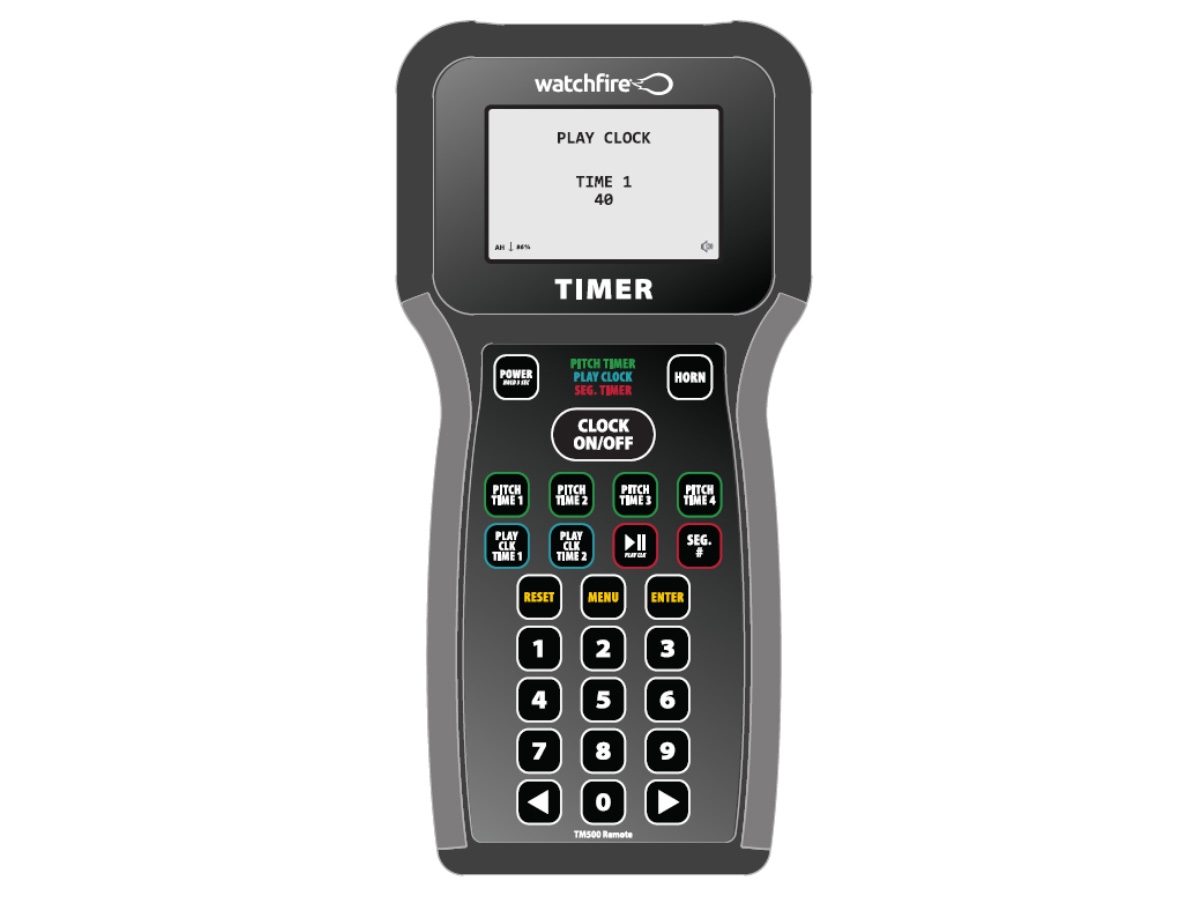 Watchfire pitch clock controllers make pace-of-play timing simple for baseball and softball. Choose a tabletop or handheld pitch clock controller with one-touch operation, clear time confirmation, and adjustable countdown settings to match league rules. The MSX5 and TM500 deliver fast, reliable pitch clock control for umpires, coaches, field staff, and volunteers.
